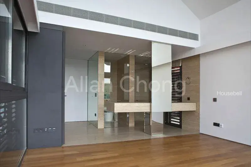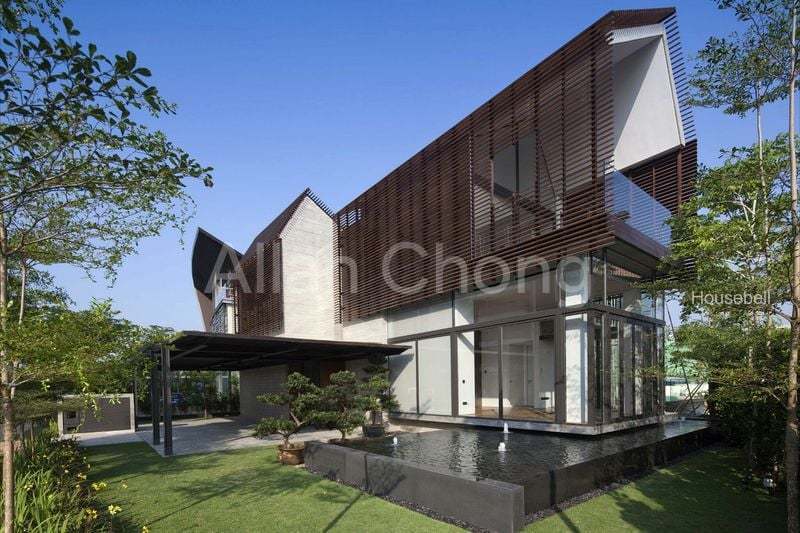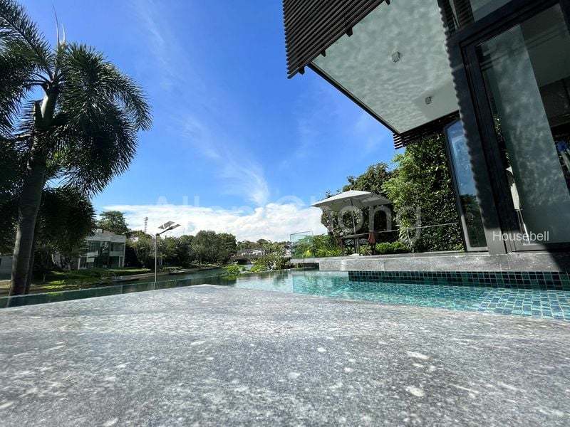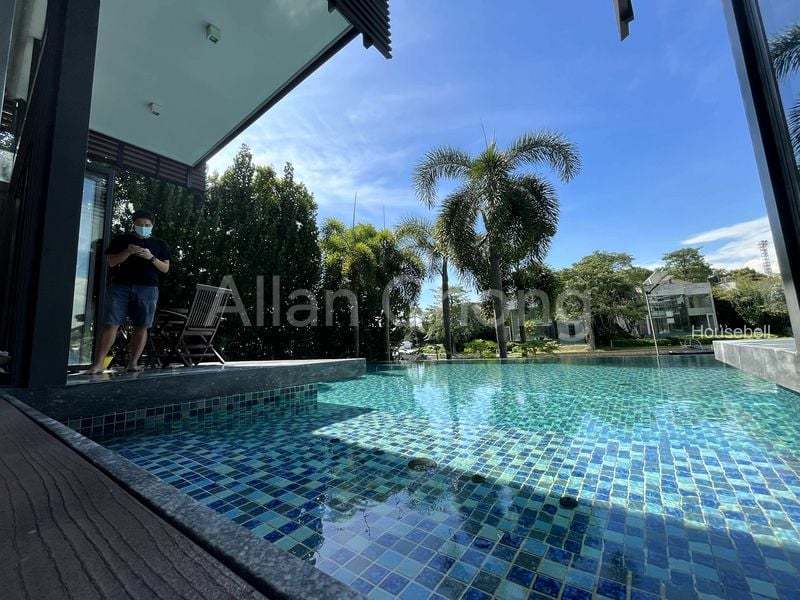 The 2-storey detached house which comes 4 bedrooms (the master suite on 1st level, 3 other en-suite bedrooms and 1 cinema room on 2nd level in total, a separated dining and living area, together with a dry and wet kitchen. On top of these, the bungalow also comes with a private home lift, a spacious Koi pond and an infinity mineral salt swimming pool looking over the waterway.