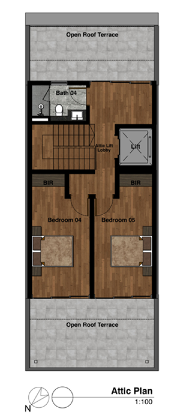 Experience modern living in this brand new 3-storey intermediate terrace with private lift and attic, NW-facing for optimal light.