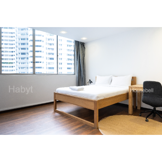 Newly refurbished and launched in December 2023, this 5-bedroom fully-furnished apartment features a communal living room, dining area, balcony and fully-equipped kitchen (fridge, stove, hood, etc.) for all your meal-prep needs. S$0 Deposit options are now available for all Singapore accommodations.
