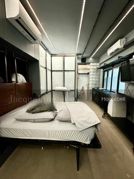 With its functional layout, the apartment features 1 bedroom and bathroom a spacious living area comes with a few sliding doors giving a potential to have extra bedroom space whenever you want, and a well-appointed kitchen. Large windows panels throughout allow plenty of natural light, creating an inviting and airy atmosphere. There’s a beautiful spiral staircase leading to the back of landed enclave.